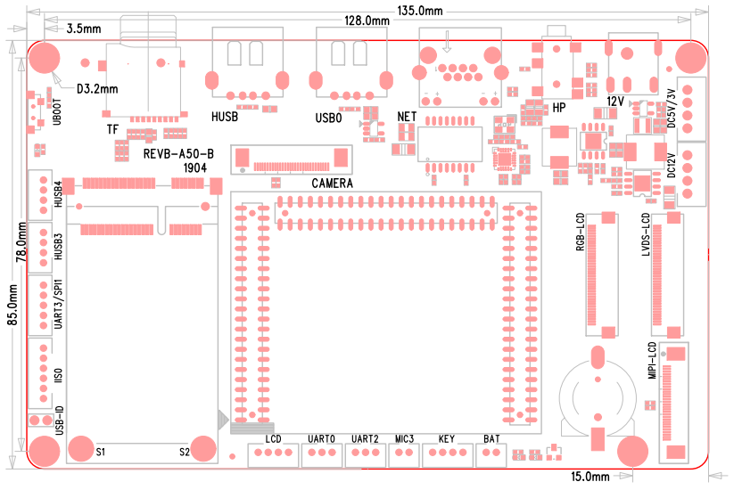 MIPI-DSI 4-lane 支持5、7、10寸觸摸屏分辨率為1920x1200 LVDS-單8bit 支持7、10、12寸觸摸屏 分辨率為1366x768 RGB-18bit 支持5、7寸觸摸屏分辨率為1920x1080 支持轉(zhuǎn)接大尺寸LVDS屏 |